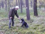 (8) Für die Riemenarbeit, bei der drei Richter dem Hund folgen müssen, ist von besonderer Bedeutung, wie der Hund die Schweißfährte hält. Er soll sie ruhig, konzentriert und zügig, jedoch nicht in stürmischem Tempo arbeiten. Der Führer darf den Hund durch gerechte Hilfen (Anhalten, Ablegen, Vor- oder Zurückgreifen) unterstützen. In diesen Fällen dürfen die Richter stehen bleiben, sonst haben sie stets dem Hund zu folgen, auch dann, wenn er von der Fährte abkommt, ohne dass der Führer es merkt.